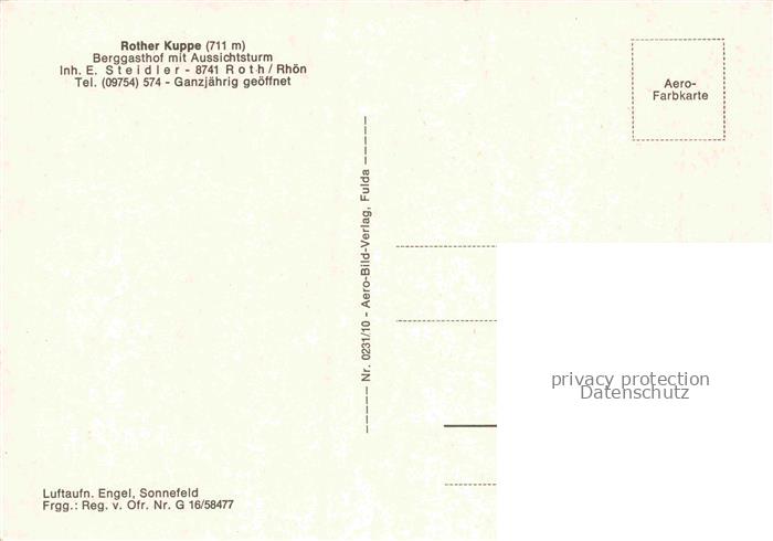 74133507 Roth Rhoen-Grabfeld Rother Kuppe Berggasthof mit Aussichtsturm postalisch nicht gelaufen Fliegeraufnahme Erhaltung siehe scans [WerneD78] KatCode: 11110009673129