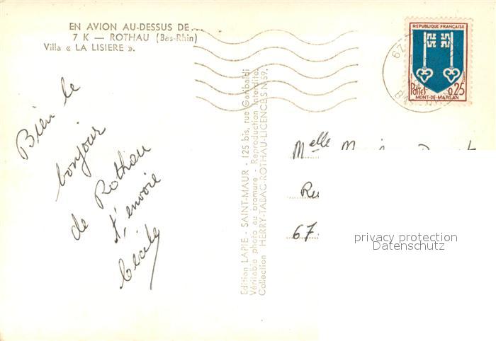 13638667 Rothau Bas-Rhin Villa La Lisière vue aérienne postalisch gelaufen Erhaltung siehe scans [FriedD77] carte postale Frie Katcode 11170067367414
