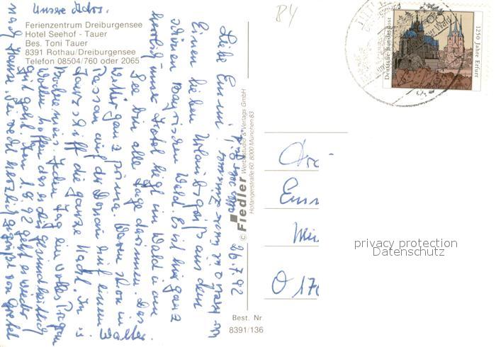 73652921 alte Postkarte Rothau Dreiburgensee Ferienzentrum Dreiburgensee Hotel Seehof Tauer Restaurant Landschaftspanorama postalisch gelaufen Erhaltung siehe scans [FriedD77] KatCode: 11110009275152
