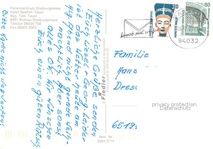 73663630 alte Postkarte Rothau Dreiburgensee Hotel Seehof-Tauer Ferienzentrum Dreiburgensee Tittling Museumsdorf Salenburg Englburg Fuerstenstein postalisch gelaufen Erhaltung siehe scans [FriedD77] KatCode: 11110009275152