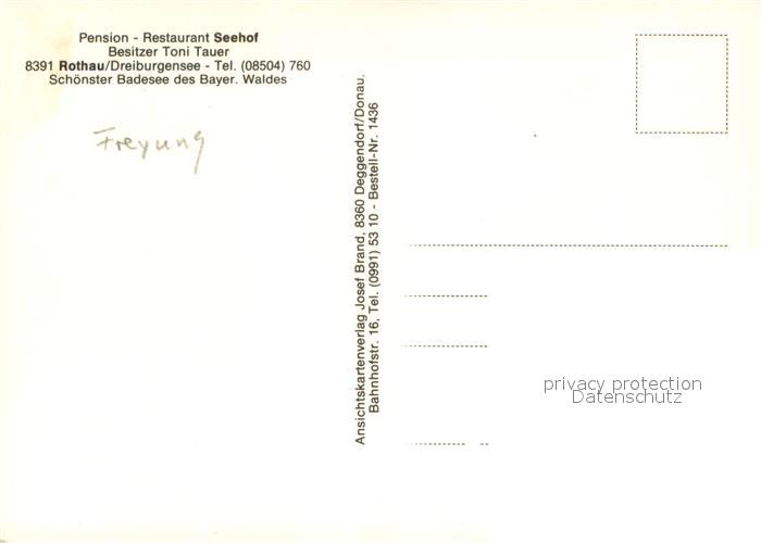 73645693 Rothau Dreiburgensee Pension Restaurant Seehof Bayerischer Wald postalisch nicht gelaufen Erhaltung siehe scans [FriedD77] KatCode: 11110009275152
