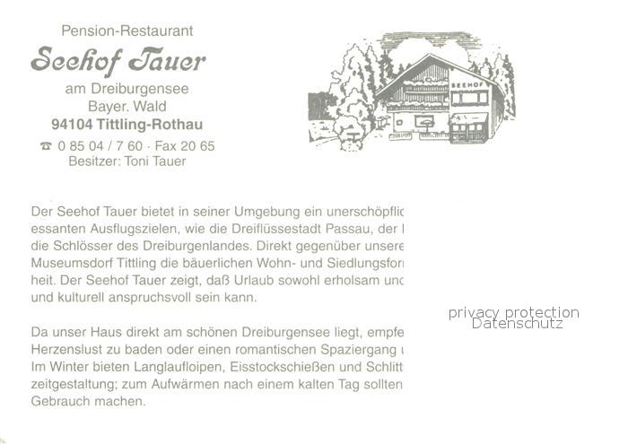 73615227 Rothau Tittling Ferienzentrum Dreiburgensee Hotel Seehof Tauer postalisch nicht gelaufen Erhaltung siehe scans [WerneD78] KatCode: 11110009275152