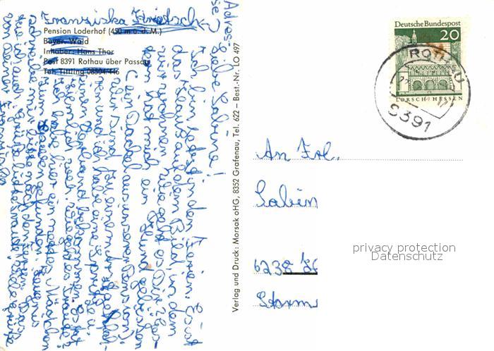 72771993 alte Postkarte Rothau Tittling Pension Loderhof postalisch gelaufen Erhaltung siehe scans [LiesaD40] KatCode: 11110009275152