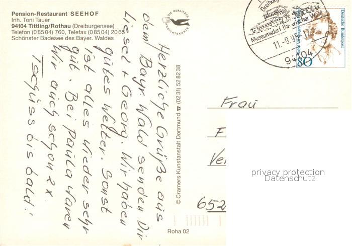 73617079 alte Postkarte Rothau Tittling Pension Restaurant Seehof Dreiburgensee Fliegeraufnahme postalisch gelaufen Erhaltung siehe scans [WerneD78] KatCode: 11110009275152