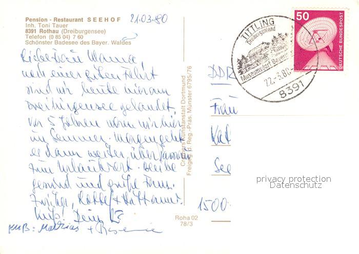73101010 alte Postkarte Rothau Tittling Pension Restaurant Seehof Fliegeraufnahme postalisch gelaufen Erhaltung siehe scans [WerneD78] KatCode: 11110009275152