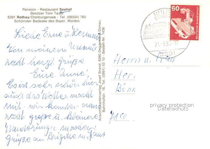 73108143 alte Postkarte Rothau Tittling Seehof postalisch gelaufen Erhaltung siehe scans [NatalD47] KatCode: 11110009275152