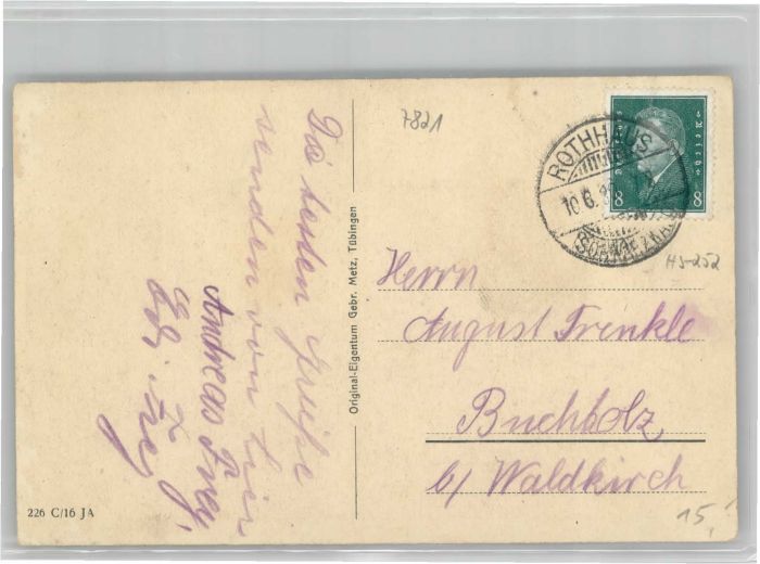 40741589 alte Postkarte Rothaus postalisch gelaufen KatCode: