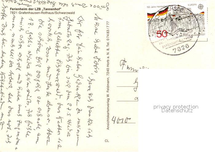 73211080 alte Postkarte Rothaus Grafenhausen Ferienheim der LZB Tannenhof postalisch gelaufen Erhaltung siehe scans [WerneD78] KatCode: 11110008337039