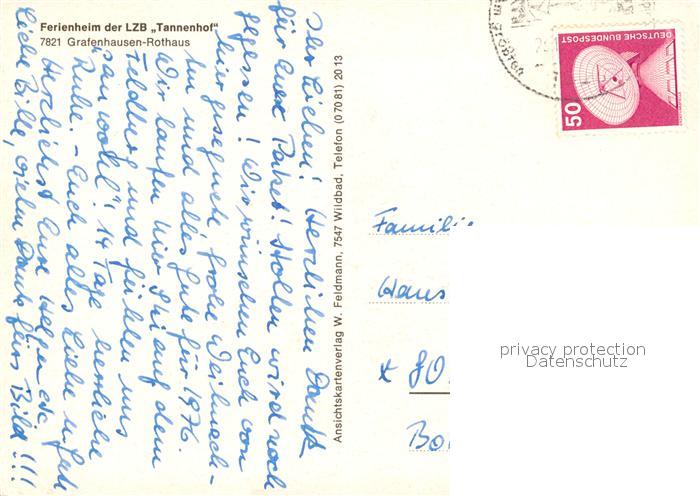 73086788 alte Postkarte Rothaus Grafenhausen Ferienheim Tannenhof Schwimmbad postalisch gelaufen Erhaltung siehe scans [KathaD81] KatCode: 11110008337039