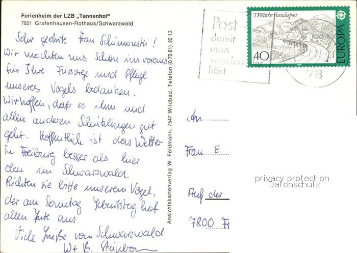 72591400 alte Postkarte Rothaus Grafenhausen Ferienzentrum der LZB Tannenhof postalisch gelaufen Erhaltung siehe scans [WerneD78] KatCode: 11110008337039