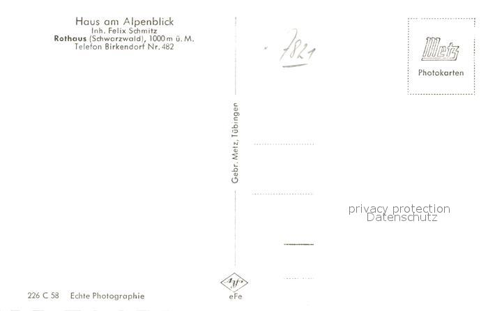 42941078 Rothaus Grafenhausen Haus am Alpenblick postalisch nicht gelaufen Erhaltung siehe scans [AndreD76] KatCode: 11110008337039