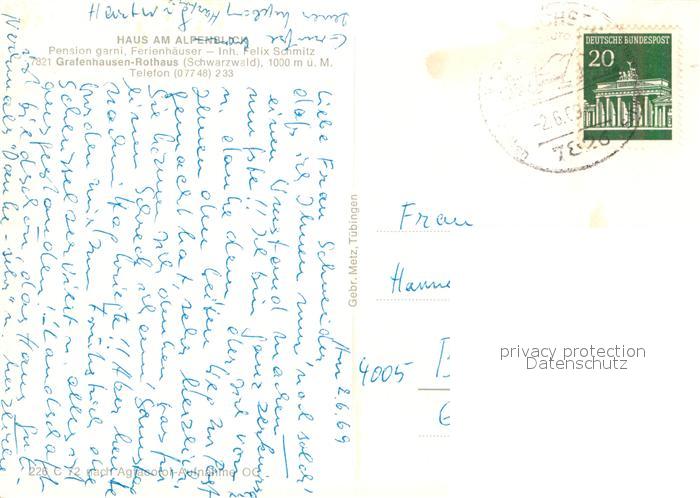 72931120 alte Postkarte Rothaus Grafenhausen Haus am Alpenblick postalisch gelaufen Erhaltung siehe scans [KathaD81] KatCode: 11110008337039