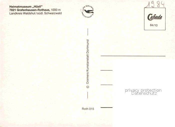 72909312 Rothaus Grafenhausen Heimatmuseum Huesli postalisch nicht gelaufen Erhaltung siehe scans [NatalD47] KatCode: 11110008337039