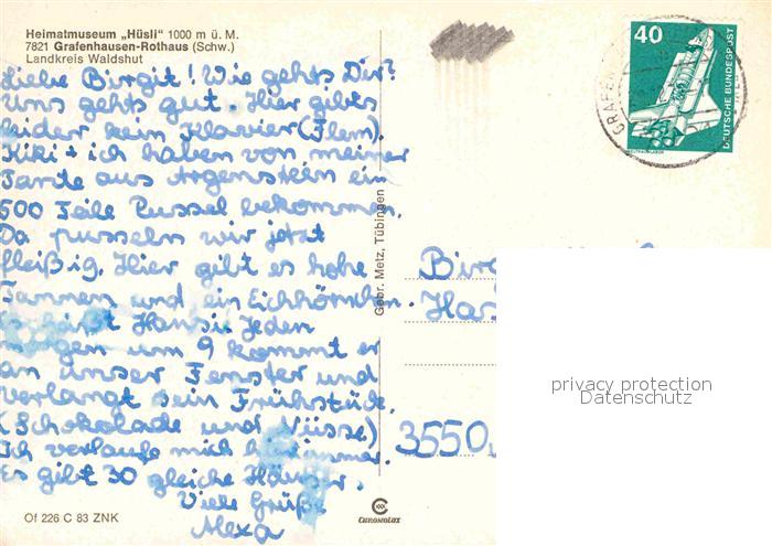 72793590 alte Postkarte Rothaus Grafenhausen Heimatmuseum Huesli postalisch gelaufen Erhaltung siehe scans [FriedD77] KatCode: 11110008337039