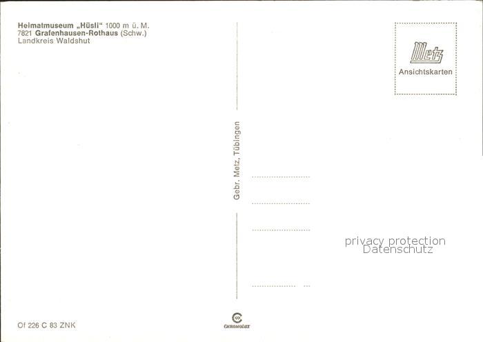 72306217 Rothaus Grafenhausen Heimatmuseum Huesli postalisch nicht gelaufen Erhaltung siehe scans KatCode: 11110008337039
