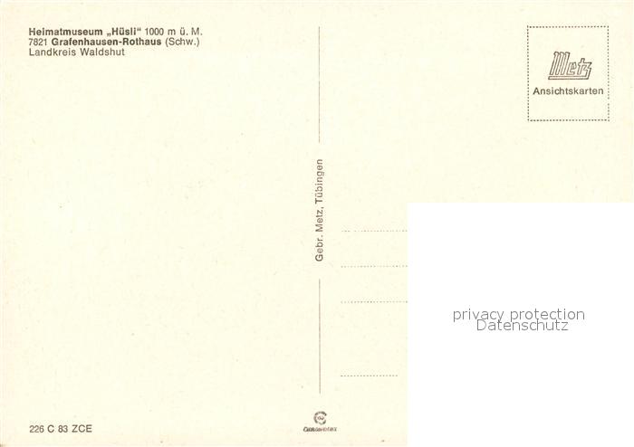 73219180 Rothaus Grafenhausen Heimatmuseum Huesli postalisch nicht gelaufen Erhaltung siehe scans [FriedD77] KatCode: 11110008337039