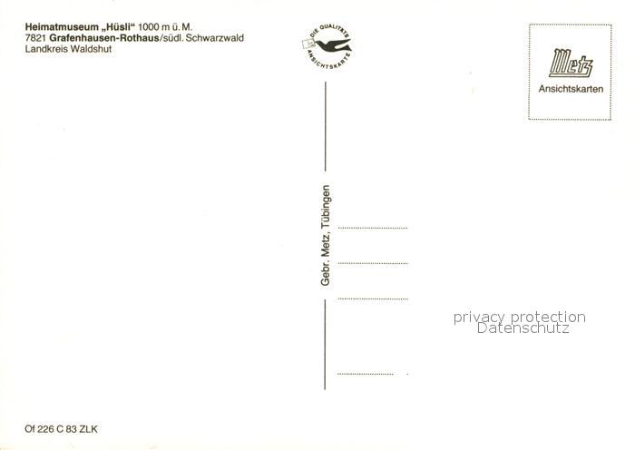 73047731 Rothaus Grafenhausen Heimatmuseum Huesli postalisch nicht gelaufen Erhaltung siehe scans [KathaD81] KatCode: 11110008337039