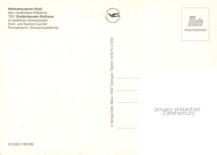 73056327 Rothaus Grafenhausen Heimatmuseum Huesli Details postalisch nicht gelaufen Erhaltung siehe scans [WerneD78] KatCode: 11110008337039