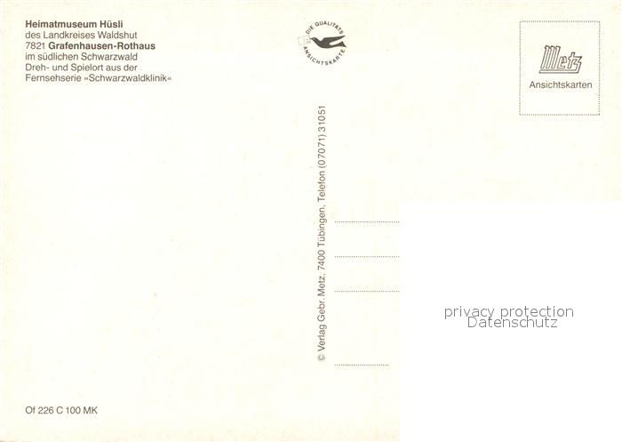 73066307 Rothaus Grafenhausen Heimatmuseum Huesli Landkreis Waldshut postalisch nicht gelaufen Erhaltung siehe scans [KathaD81] KatCode: 11110008337039