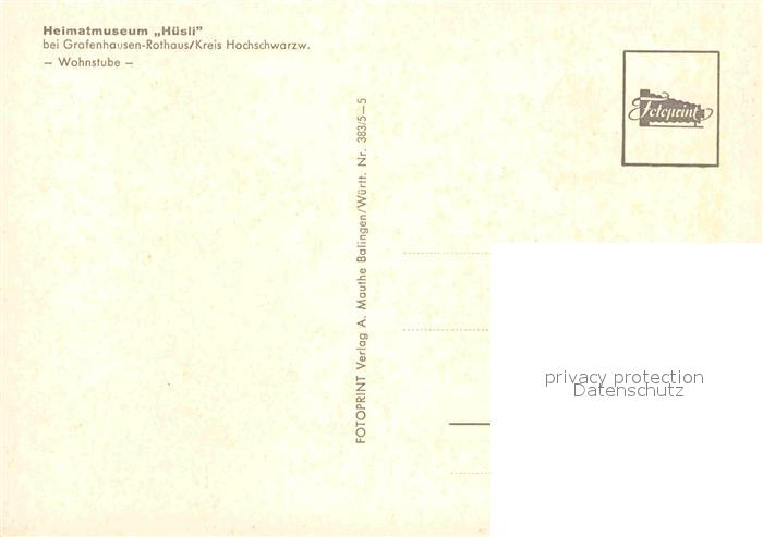 72836436 Rothaus Grafenhausen Heimatmuseum Huesli Wohnstube postalisch nicht gelaufen Erhaltung siehe scans [PaolaD17] KatCode: 11110008337039