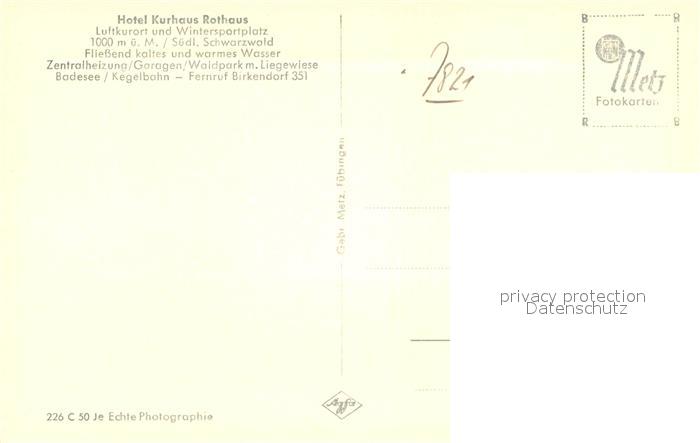 42941058 Rothaus Grafenhausen Hotel Kurhaus postalisch nicht gelaufen Erhaltung siehe scans [AndreD76] KatCode: 11110008337039
