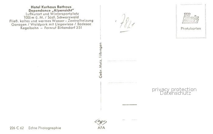 42941074 Rothaus Grafenhausen Hotel Kurhaus Dependance Alpensicht postalisch nicht gelaufen Erhaltung siehe scans [AndreD76] KatCode: 11110008337039