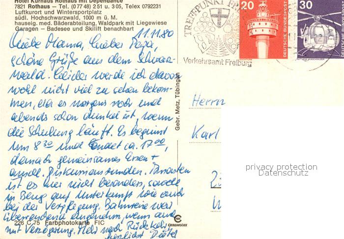 73741781 alte Postkarte Rothaus Grafenhausen Hotel Kurhaus Rothaus mit Dependance postalisch gelaufen Erhaltung siehe scans [WerneD78] KatCode: 11110008337039