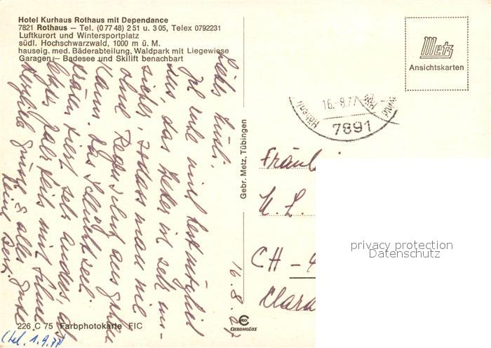 73298142 alte Postkarte Rothaus Grafenhausen Hotel Kurhaus Rothaus mit Dependance postalisch gelaufen Erhaltung siehe scans [FriedD77] KatCode: 11110008337039