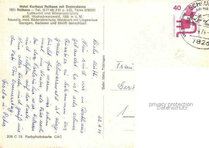 72625810 alte Postkarte Rothaus Grafenhausen Hotel Kurhaus Rothaus mit Dependance postalisch gelaufen Erhaltung siehe scans [FriedD77] KatCode: 11110008337039