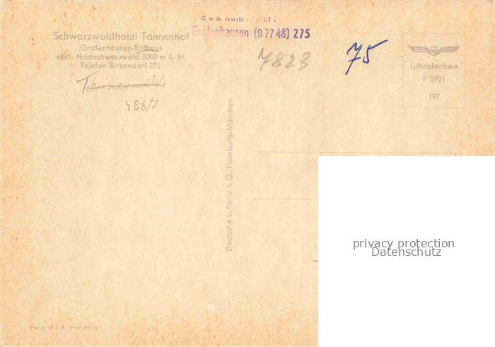74044831 Rothaus Grafenhausen Schwarzwald BW Schwarzwaldhotel Tannenhof Fliegeraufnahme postalisch nicht gelaufen Erhaltung siehe scans [WerneD78] KatCode: 11110008337039