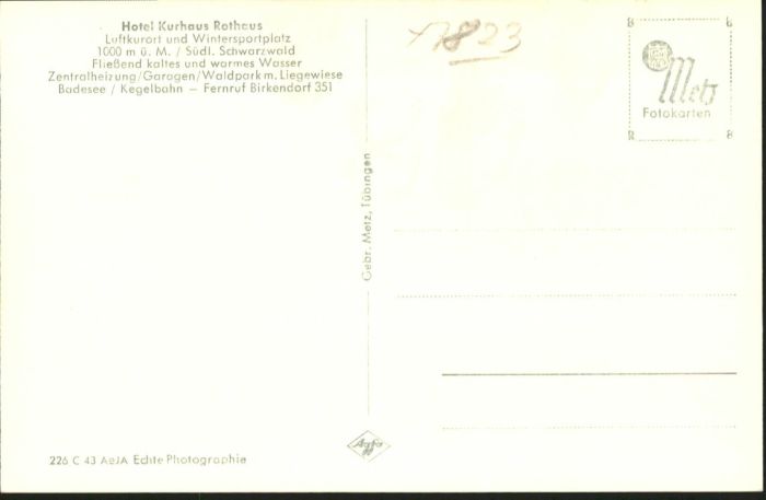 40769741 Rothaus Hotel Kurhaus postalisch nicht gelaufen KatCode: