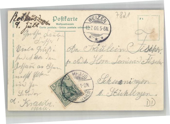 40734801 alte Postkarte Rothaus Kurhaus postalisch gelaufen KatCode: