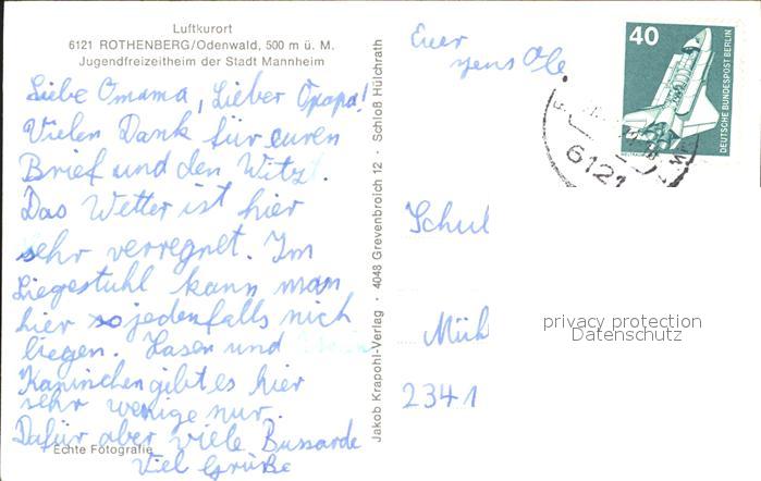 31728314 alte Postkarte Rothenberg Odenwald Jugendfreizeitheim postalisch gelaufen Erhaltung siehe scans KatCode: 11110006437014
