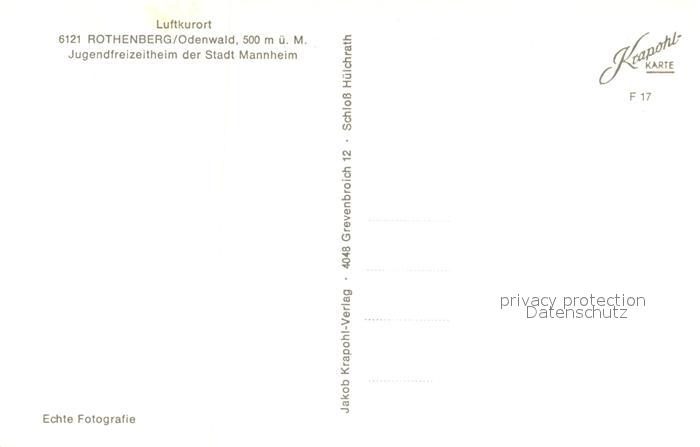 43350497 Rothenberg Odenwald Panorama mit Jugendfreizeitheim der Stadt Mannheim postalisch nicht gelaufen Erhaltung siehe scans [FriedD77] KatCode: 11110006437014