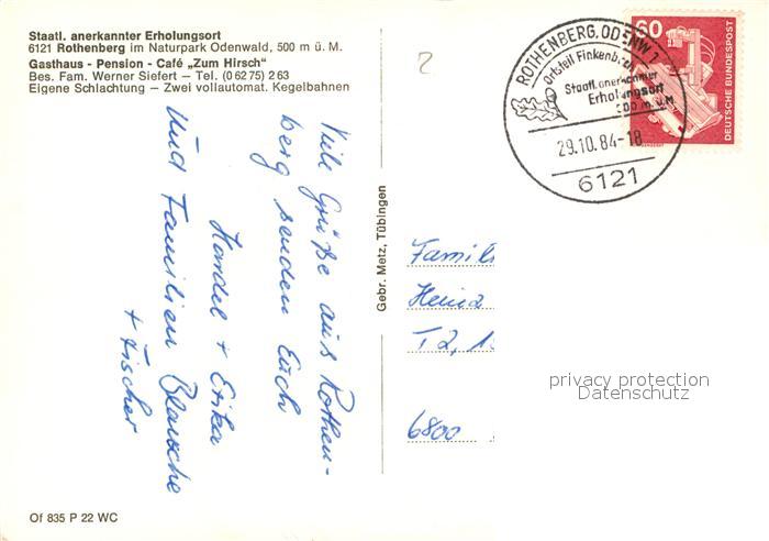 73172405 alte Postkarte Rothenberg Odenwald postalisch gelaufen Erhaltung siehe scans [PaolaD17] KatCode: 11110006437014