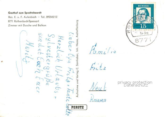 73634795 alte Postkarte Rothenbuch Gasthof zum Spechtshaardt Gastraum Panorama postalisch gelaufen Erhaltung siehe scans [WerneD78] KatCode: 11110009671148