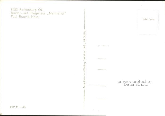 72060614 Rothenburg Oberlausitz Bruederhaus Pflegehaus Martinshof Paul Braune Haus postalisch nicht gelaufen Erhaltung siehe scans KatCode: 11110014284350