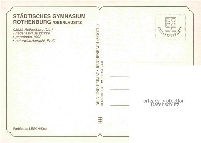 74024752 Rothenburg Oberlausitz Goerlitz Sachsen Staedtisches Gymnasium Klassenzimmer postalisch nicht gelaufen Erhaltung siehe scans [FriedD77] KatCode: 11110014284350