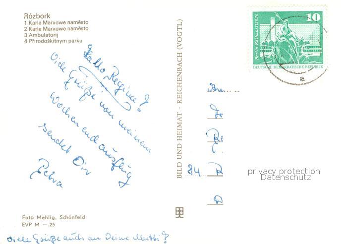 73675672 alte Postkarte Rothenburg Oberlausitz Karl Marx Platz Landambulatorium Naturschutzpark postalisch gelaufen Erhaltung siehe scans [FriedD77] KatCode: 11110014284350