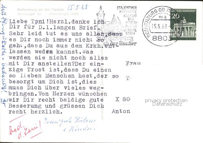 72404778 alte Postkarte Rothenburg Tauber postalisch gelaufen Erhaltung siehe scans KatCode: 11110009571193