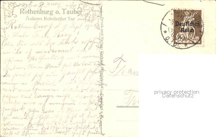 72104641 alte Postkarte Rothenburg Tauber aeusseres Kobolzeller Tor postalisch gelaufen Erhaltung siehe scans KatCode: 11110009571193