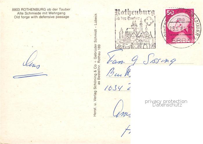 72928634 alte Postkarte Rothenburg Tauber Alte Schmiede mit Wehrgang Pferdekutsche postalisch gelaufen Erhaltung siehe scans [WerneD78] KatCode: 11110009571193