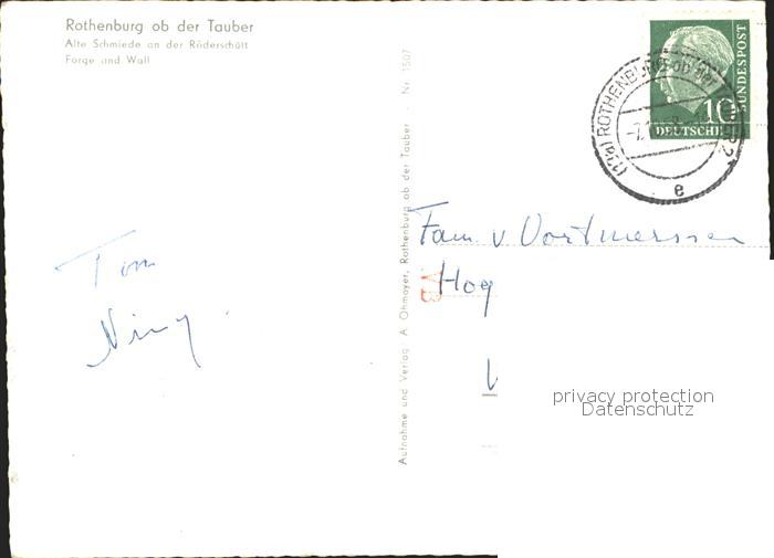 72024159 alte Postkarte Rothenburg Tauber Alte Schmiede Roederschuett Forge Wall postalisch gelaufen Erhaltung siehe scans KatCode: 11110009571193