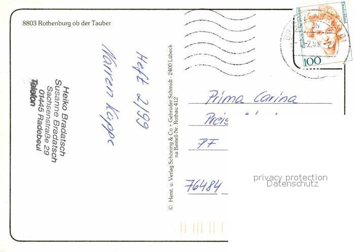 72707147 alte Postkarte Rothenburg Tauber Alte Schmiede Roederturm Innenseite Bastei Basteibruecke postalisch gelaufen Erhaltung siehe scans [WerneD78] KatCode: 11110009571193