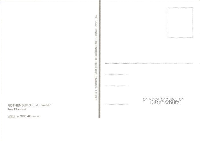 72306284 Rothenburg Tauber Am Ploenlein postalisch nicht gelaufen Erhaltung siehe scans KatCode: 11110009571193