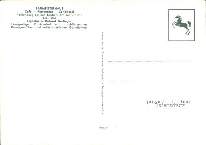 72492300 Rothenburg Tauber Baumeisterhaus postalisch nicht gelaufen Erhaltung siehe scans KatCode: 11110009571193