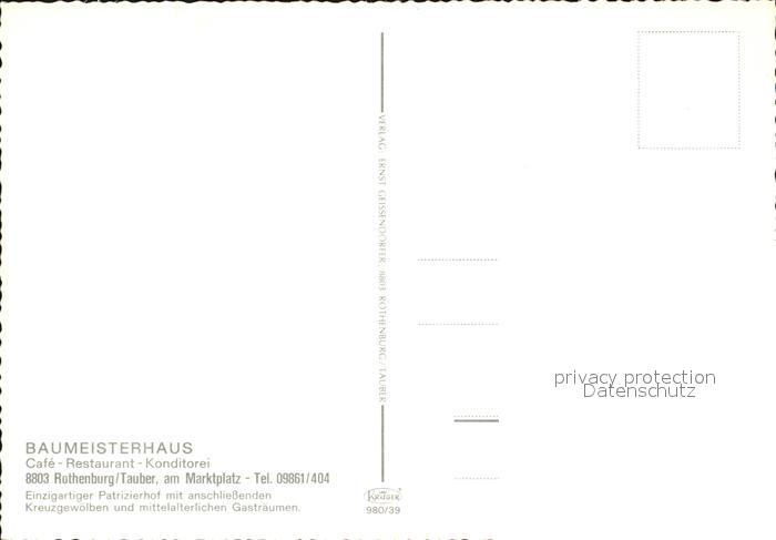 72443592 Rothenburg Tauber Baumeisterhaus postalisch nicht gelaufen Erhaltung siehe scans KatCode: 11110009571193