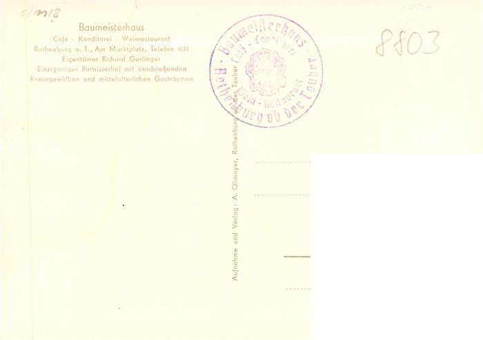 73891651 Rothenburg Tauber Baumeisterhaus Cafe Konditorei Weinrestaurant postalisch nicht gelaufen Erhaltung siehe scans [FriedD77] KatCode: 11110009571193