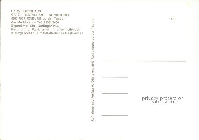 71998810 Rothenburg Tauber Baumeisterhaus Cafe Restaurant postalisch nicht gelaufen Erhaltung siehe scans KatCode: 11110009571193