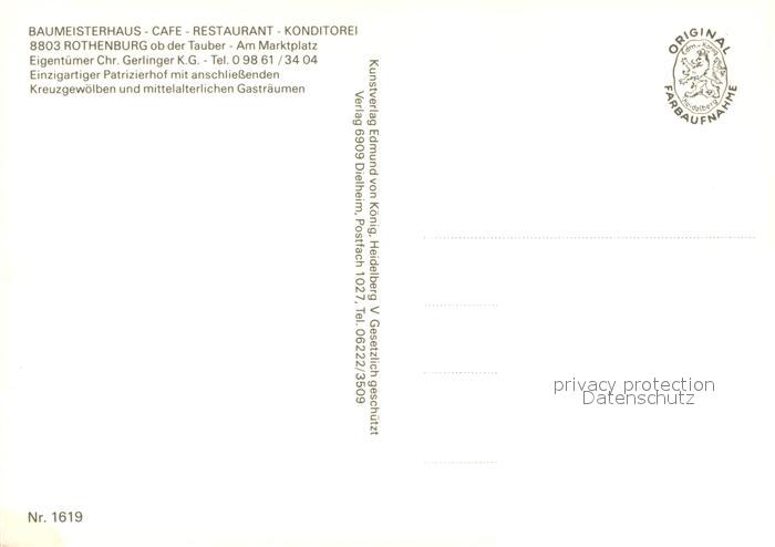 73646123 Rothenburg Tauber Baumeisterhaus Cafe Restaurant Gastraeume postalisch nicht gelaufen Erhaltung siehe scans [WerneD78] KatCode: 11110009571193